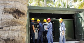 變電站的40.5kV、12kV設(shè)備和變電站綜合自動化系統(tǒng)均在工廠內(nèi)完成設(shè)計(jì)、制造、安裝和內(nèi)部電氣接線。出廠前整體調(diào)試合格、整體運(yùn)輸、運(yùn)抵現(xiàn)場。從而實(shí)現(xiàn)了變電站的工廠化生產(chǎn)。使得變電站生產(chǎn)周期大大縮短,交貨便捷、迅速。到現(xiàn)場工作只需完成變電站箱體水泥基礎(chǔ)建設(shè),直接吊裝就位,拼裝即可,大大較少了現(xiàn)場施工的工作量。